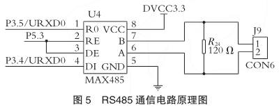 RS485接口組成半雙工網(wǎng)絡,選擇兩線制與上位機電腦相連,采用屏蔽雙絞線傳輸。通信系統(tǒng)整體為總線式結構,這樣1臺上位機*多可以和現(xiàn)場32臺智能儀表相連。采用MAX485芯片完成電壓轉換,圖5為RS485通信電路原理圖。