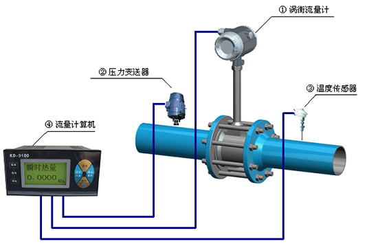 渦街流量計是以全新的設(shè)計理念,將溫度、壓力、流量信號集于一體,通過智能數(shù)字處理器將三種信號混合處理后輸出一個補償后的標(biāo)準(zhǔn)流量,從而實現(xiàn)了對氣體、蒸汽的溫壓補償功能。由于采用了智能一體化的設(shè)計理念,因此,凱銘渦街流量計具有結(jié)構(gòu)緊湊、安裝使用維護方便的特點。