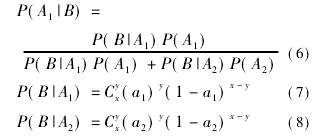 a.*1次實(shí)驗(yàn)。用式(5)針對所監(jiān)控的逾1000塊規(guī)格為LWQZ-100B流量計(jì)隨機(jī)計(jì)算,并選取其中5塊S≤20分的流量計(jì)。經(jīng)檢測臺(tái)檢測后發(fā)現(xiàn),該5塊流量計(jì)中有3塊確實(shí)為機(jī)械慢表,2塊不是機(jī)械慢表。設(shè)B表示事件:x塊流量計(jì)中有y塊為機(jī)械慢表。在本事件中,x為5,y為3。