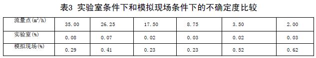 實驗室條件下和模擬現(xiàn)場條件下的不確定度比較(表3)兩次結(jié)果可以看出,兩次實驗各個流量點的不確定度差距非常大??梢姡?strong>皮革廠污水管道流量計對安裝條件還是比較苛刻的。