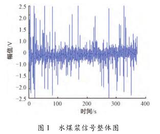 針對(duì)城市生活污水流量計(jì)測(cè)量水煤漿時(shí)出現(xiàn)較大波動(dòng),甚至回零這一問(wèn)題,特去某煤化工企業(yè)甲醇分公司進(jìn)行現(xiàn)場(chǎng)數(shù)據(jù)采集。該公司所使用的對(duì)置式四噴嘴氣化有4個(gè)噴嘴,噴嘴管道口徑為125mm,管中水煤漿流量基本穩(wěn)定在19m³/h(流速約為0.48m/s)。每條噴嘴煤漿線上安裝了3臺(tái)城市生活污水流量計(jì),每臺(tái)城市生活污水流量計(jì)由傳感器和變送器兩部分組成。選擇其中1條水煤漿管線上的1臺(tái)城市生活污水流量計(jì)進(jìn)行數(shù)據(jù)采集,因?yàn)樵撆_(tái)城市生活污水流量計(jì)測(cè)量結(jié)果波動(dòng)大,甚至出現(xiàn)回零的現(xiàn)象。將課題組研制的基于DSP的電磁流量變送器的信號(hào)線和勵(lì)磁線接到該電磁流量傳感器的電極和勵(lì)磁線圈上,組合成完整的城市生活污水流量計(jì),進(jìn)行水煤漿數(shù)據(jù)采集。使用的電磁流量變送器是以TI公司DSP芯片TMS320F28335為核心,采用高頻勵(lì)磁方案,其硬件主要包括勵(lì)磁控制系統(tǒng)和信號(hào)采集處理系統(tǒng),具體的模塊有勵(lì)磁驅(qū)動(dòng)模塊、信號(hào)調(diào)理采集模塊、信號(hào)處理控制模塊、人機(jī)接口模塊、通信模塊及電源管理模塊。信號(hào)調(diào)理采集模塊中的調(diào)理電路對(duì)一次儀表輸出的信號(hào)進(jìn)行放大和濾波,截止頻率是2kHz,放大倍數(shù)約為230倍。通過(guò)NI公司USB-6216型號(hào)的數(shù)據(jù)采集卡進(jìn)行數(shù)據(jù)采集,把調(diào)理電路的輸出端連接到數(shù)據(jù)采集卡的一個(gè)差分輸入端,并設(shè)置數(shù)據(jù)采集卡工作在差分的測(cè)量模式,設(shè)置采集卡的采樣頻率為10kHz。采集多組水煤漿信號(hào)數(shù)據(jù),每組數(shù)據(jù)的時(shí)間長(zhǎng)度為5min。