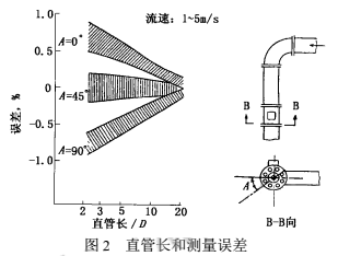 2000年上海原水公司擬在已建成的某泵站加裝DN2200化工生活污水流量計(jì),但彎管下游安裝位置的前直管長度明顯不符合規(guī)定中5D~10D(D為管徑,下同)的要求,此時(shí),影響測(cè)量誤差有多大呢?