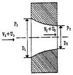 設(shè)整流器進(jìn)口處壓力為P1,平均流速為V1,某點(diǎn)上的速度不均勻度為U1,出口處壓力為P2,平均流速為V2,通過進(jìn)口處某點(diǎn)同**線,在出口處的速度不均勻度為U2,沿該流線,由伯努利方程得: