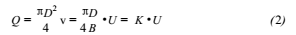 式(1)說明,導(dǎo)體在磁場(chǎng)內(nèi)作切割磁力線運(yùn)動(dòng),導(dǎo)體兩端產(chǎn)生的感應(yīng)電動(dòng)勢(shì)的大小與磁感應(yīng)強(qiáng)度B成正比,與導(dǎo)體的長(zhǎng)度D成正比,與導(dǎo)體運(yùn)動(dòng)的速度v成正比。由式(2)可知液體的體積流量與感應(yīng)電動(dòng)勢(shì)成正比,這就是生活廢水流量計(jì)的設(shè)計(jì)原理。