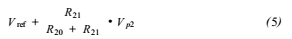 整個(gè)電路的工作過程為:當(dāng)P2.9為高電平時(shí),Q1、Q2、Q3、Q4導(dǎo)通,此時(shí)Q5的基極電流為零,Q5截止,此時(shí)P2的端口2輸出+24V的電壓。此時(shí)P2.8為低電平,Q6、Q7、Q8、Q9,此時(shí)有電流流經(jīng)Q10基極,并使其基極和發(fā)射級(jí)導(dǎo)通,Q10的功能相當(dāng)于一個(gè)二極管的作用,此時(shí)P1端口沒有電壓輸出。那么,A/D轉(zhuǎn)換器的參考輸入端Vref(+)為: