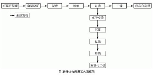本項(xiàng)目為石煤綜合利用的項(xiàng)目?,F(xiàn)有提釩工藝產(chǎn)生大量廢渣。其主要成分為二氧化硅,但其中夾帶有大量的釩資源,釩資源利用率低,同時(shí),該廢渣中堿含量較高,如將廢渣隨意堆放,易造成環(huán)境污染。本項(xiàng)目*大特點(diǎn)在于利用現(xiàn)有提釩工藝中的提釩二次渣作為制備沉淀法白炭黑的主要原料,將廢渣中的硅資源得到充分利用。為企業(yè)創(chuàng)造了新的經(jīng)濟(jì)增長點(diǎn),同時(shí),解決了現(xiàn)有提釩生產(chǎn)中造成的釩資源浪費(fèi)和環(huán)境污染問題,此外,該項(xiàng)目利用現(xiàn)有提釩生產(chǎn)線脫碳工序中產(chǎn)生的余熱作為加熱熱源,取代了傳統(tǒng)工藝以煙煤為主要燃料的方法,即對生產(chǎn)中產(chǎn)生的余熱得到了有效合理的利用,又進(jìn)一步降低了產(chǎn)生的燃料成本,達(dá)到了節(jié)能減排,資源綜合利用的目的,工藝流程框圖如下。