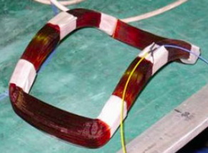由此可見,尿酸流量計正常運行需要有穩(wěn)定的磁場,而磁場正是靠傳感器線圈內的 勵磁電流來產生的。勵磁線圈如圖2所示。