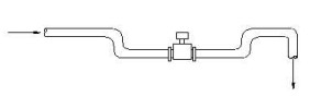 4.當(dāng)向下管道長(zhǎng)度超過(guò)5m時(shí),在傳感器后安裝一個(gè)虹吸管或一個(gè)放氣閥。以避免低壓而可能造成的對(duì)測(cè)量管襯里的破壞。保證滿(mǎn)管,減少含氣量。