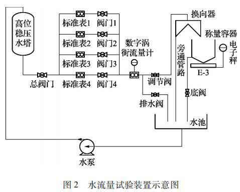 在試驗(yàn)裝置管路出口處裝有換向器,用來(lái)改變流體的流向,使水流入稱量容器或者旁通管路而不改變流量。換向器啟動(dòng)時(shí),觸發(fā)計(jì)時(shí)控制器,以保證水的重量和時(shí)間的同步測(cè)量。