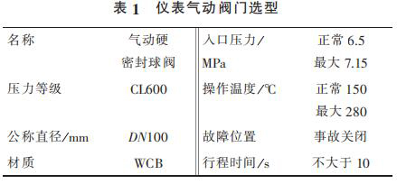 1) 溫壓補償蒸汽流量計出口管線總閥泄漏無法在線處理,導(dǎo)致氣化爐停車。在入氣化爐根部增加 2 臺儀表氣動閥門,要求每月進(jìn)行 2 次開、關(guān),防止閥門出現(xiàn)卡塞現(xiàn)象。 新增 2 臺儀表氣動閥門相關(guān)參數(shù)見表 1。
