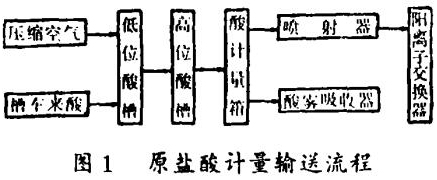 原鹽酸貯存、計(jì)量和輸送流程如圖1。