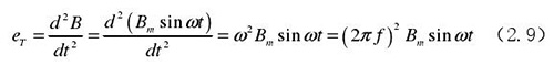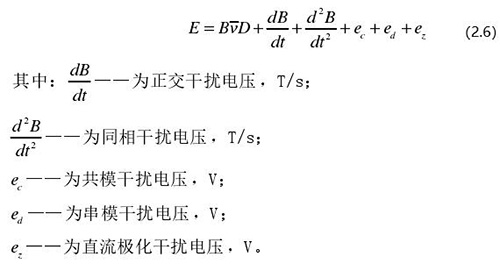 從上圖 2.5 中可以觀察到兩個(gè)電極、勵(lì)磁線(xiàn)圈、轉(zhuǎn)換器內(nèi)阻之間形成了一個(gè)閉合回路,將此回路稱(chēng)之為初級(jí)繞組,從理論上進(jìn)行分析,磁力線(xiàn) B 應(yīng)當(dāng)平行于勵(lì)磁線(xiàn)圈所產(chǎn)生的磁感應(yīng)線(xiàn),但在實(shí)際的應(yīng)用過(guò)程中由于工藝差異,因此無(wú)法達(dá)到理想狀態(tài),會(huì)產(chǎn)生磁力線(xiàn)穿過(guò)勵(lì)磁線(xiàn)圈磁感應(yīng)線(xiàn)的情況,此時(shí)將會(huì)產(chǎn)生相應(yīng)的感應(yīng)電動(dòng)勢(shì),將此部分感應(yīng)電動(dòng)勢(shì)稱(chēng)為變壓器效應(yīng)。此效應(yīng)同樣滿(mǎn)足于楞次定律,利用楞次定律進(jìn)行計(jì)算可得如下電動(dòng)勢(shì):
