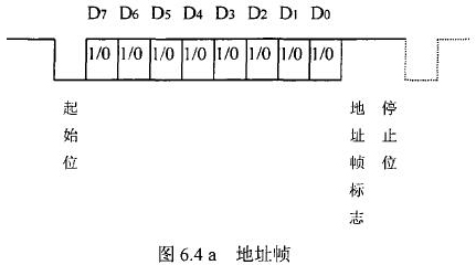 飲用水流量計(jì)等節(jié)點(diǎn)設(shè)備和站內(nèi)PC機(jī)間的通信采用異步串行通訊控制規(guī)程,并采用地址位喚醒握手協(xié)議。因此在協(xié)議中規(guī)定了傳地址和傳數(shù)據(jù)兩種不同的幀格式,如圖.64所示。地址幀和數(shù)據(jù)幀由11位構(gòu)成,幀格式為l位起始位,l位停止位,8位數(shù)據(jù)位,1位*9位。我們將*9位設(shè)定為“地址/數(shù)據(jù)指示位”,用來區(qū)分所發(fā)送/接受的幀信息是地址幀還是數(shù)據(jù)幀。*9位為1,表示PC機(jī)發(fā)送/接受的是“地址幀”*9位為O,表示主機(jī)發(fā)送/接受的是“數(shù)據(jù)幀”。命令幀與校驗(yàn)和的發(fā)送格式與數(shù)據(jù)幀相同,因此可由數(shù)據(jù)幀演化得到。