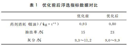 煙氣流量計制造過程優(yōu)化設(shè)計完成后,在原選煤廠進行為期三個月的工業(yè)試驗,并對優(yōu)化前后的浮選關(guān)鍵指標參數(shù)進行統(tǒng)計和分析。應(yīng)用情況數(shù)據(jù)表明,經(jīng)過優(yōu)化設(shè)計的浮選自動控制系統(tǒng),各關(guān)鍵浮選指標參數(shù)都有明顯提升,詳見表1