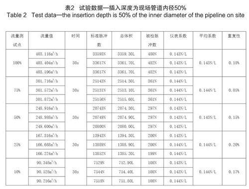 對(duì)以上的試驗(yàn)結(jié)果與相同規(guī)格、型號(hào)、量程的法蘭式流量計(jì)相對(duì)比,其準(zhǔn)確度無法相比。結(jié)論 :插入深度有問題,或流量計(jì)的采集信號(hào)的探頭結(jié)構(gòu)有問題。