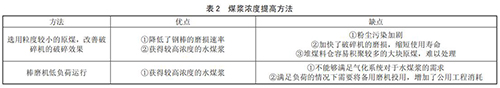 根據(jù)管道蒸汽流量計(jì)跑漿原因可以了解到,在保證管道蒸汽流量計(jì)不存在跑漿情況下,制備高品質(zhì)煤漿需要滿足兩點(diǎn)要求,即較小入口原煤粒度和較低磨機(jī)負(fù)荷,保證原煤在磨機(jī)內(nèi)部有較長停留時(shí)間與充足滾筒篩過濾面積 . 通用的方法一般有以下兩種,如表 2 所示。