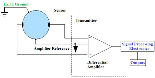 在典型的脈沖直流磁力計(jì)中,流量信號(hào)連接到差分放大器,該差分放大器與變送器外殼電氣隔離。接地過程為該差分放大器提供了穩(wěn)定的參考。