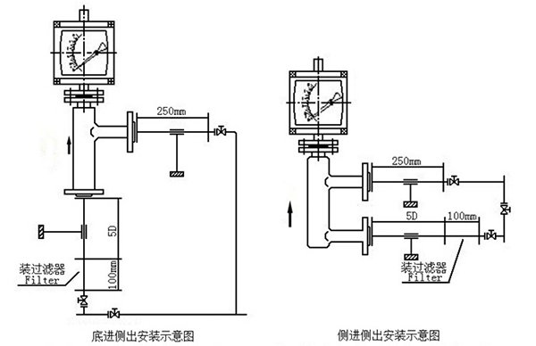 4.若介質(zhì)中含有固體雜質(zhì),應在閥門和直管段間加裝過濾器;若介質(zhì)中含有鐵磁物質(zhì),應在指針浮子流量計的上游安裝磁過濾器。